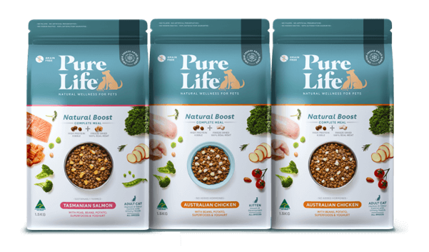 Pure Life Natural Boost Range is Australia’s first complete meal with freeze dried 100% real meat pieces and high protein kibble, designed to nourish our dogs and cats to be at their healthiest and happiest.